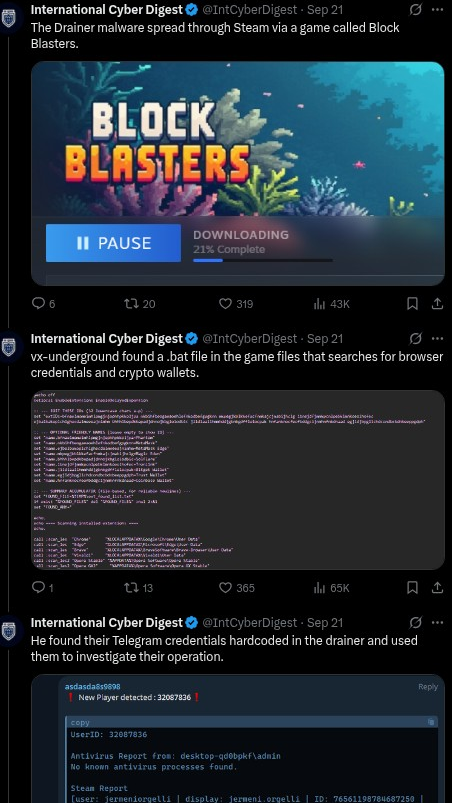 During a livestream fundraiser on September 21, Plavnieks was tricked into downloading a Steam game called âBlockBlastersâ that contained sophisticated malware. The malicious software drained more than $32,000 from the Latvian gamerâs cryptocurrency wallet, leaving him devastated and in tears on stream.