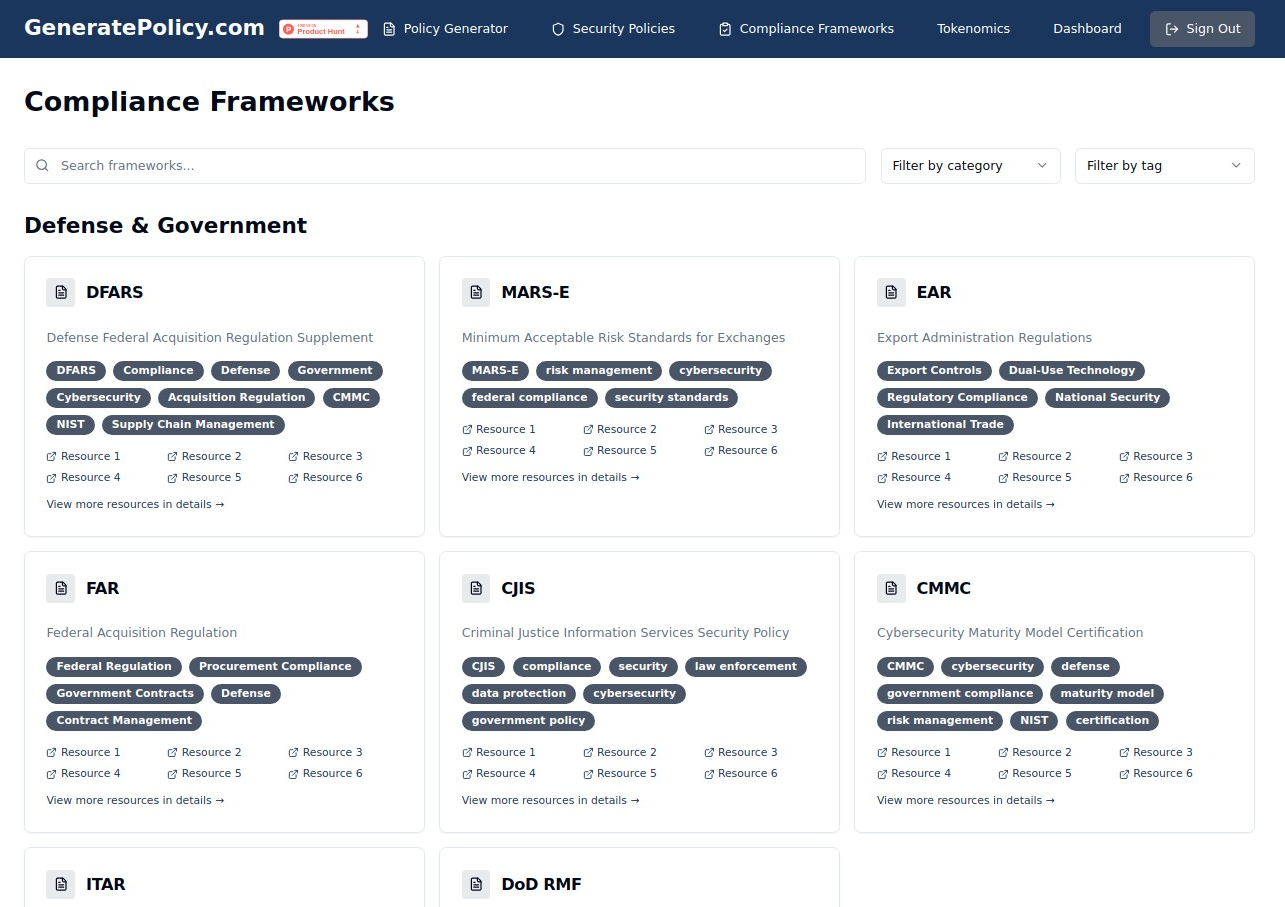 - AI to the Rescue! This platform uses artificial intelligence (AI), the same tech behind those smart chatbots, to instantly create cybersecurity policies for you. Think of it as having a super knowledgeable security expert write your policies in minutes!- No More Confusing Jargon! GeneratePolicy.com simplifies complex policy-writing, making it easier for everyone, even us noobs, to understand and implement.- Covers the Important Stuff: Need a policy that follows industry standards? This tool has you covered! It supports major frameworks like NIST, ISO 27001, and even GDPR if you’re dealing with European data. This means your policies will be in line with what the pros use.- Customize It! While the AI does the heavy lifting, you can still easily tweak the policies to fit your specific needs.- Always Up-to-Date: Security rules change all the time. GeneratePolicy.com provides continuous updates to your policies, so you don’t have to worry about them becoming outdated.- Easy to Use: The platform has a user-friendly dashboard where you can manage and download all your policies. You can even get them in PDF or Word format!- Budget-Friendly: They use a token-based system, so you only pay for what you need. This is perfect for startups and smaller projects where every penny counts.